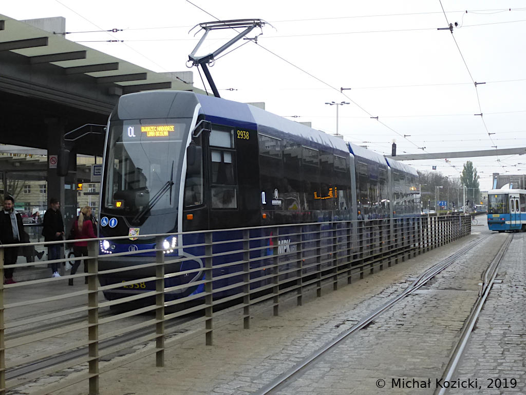 Moderus Beta No. 2938 on route OL is stopping at Plac Grunwaldzki, Wroclaw, Poland, 29.10.2019.