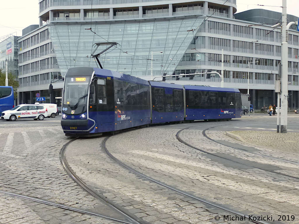 Moderus Beta No. 2927 on route 16 will soon be stopping at Plac Grunwaldzki, Wroclaw, Poland, 29.10.2019.