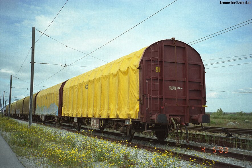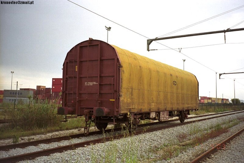 CP tarpaulin wagon type Lis. Parked near the "Parque de Mercadorias" in Bobadela. Photo: 27/04/2003.