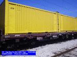 Vagão plataforma CP tipo Sgs para transporte de contentores. Estacionado perto do "Parque de Mercadorias" da Bobadela em Março de 2003.