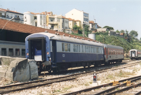 | Museu Nacional Ferroviário: Carruagens Camas CP Wagon-Lits S2U do antigo Expresso du Oriente Preservadas, no Entroncamento. Fevereiro/2002 National Railway Museum: CP Wagon-Lits S2U "Orient Express" Preserved sleeping coaches, at Entroncamento. February/2002 © Copyright, photo and scan by André D. Costa (andre_d_costa@netc.pt) |