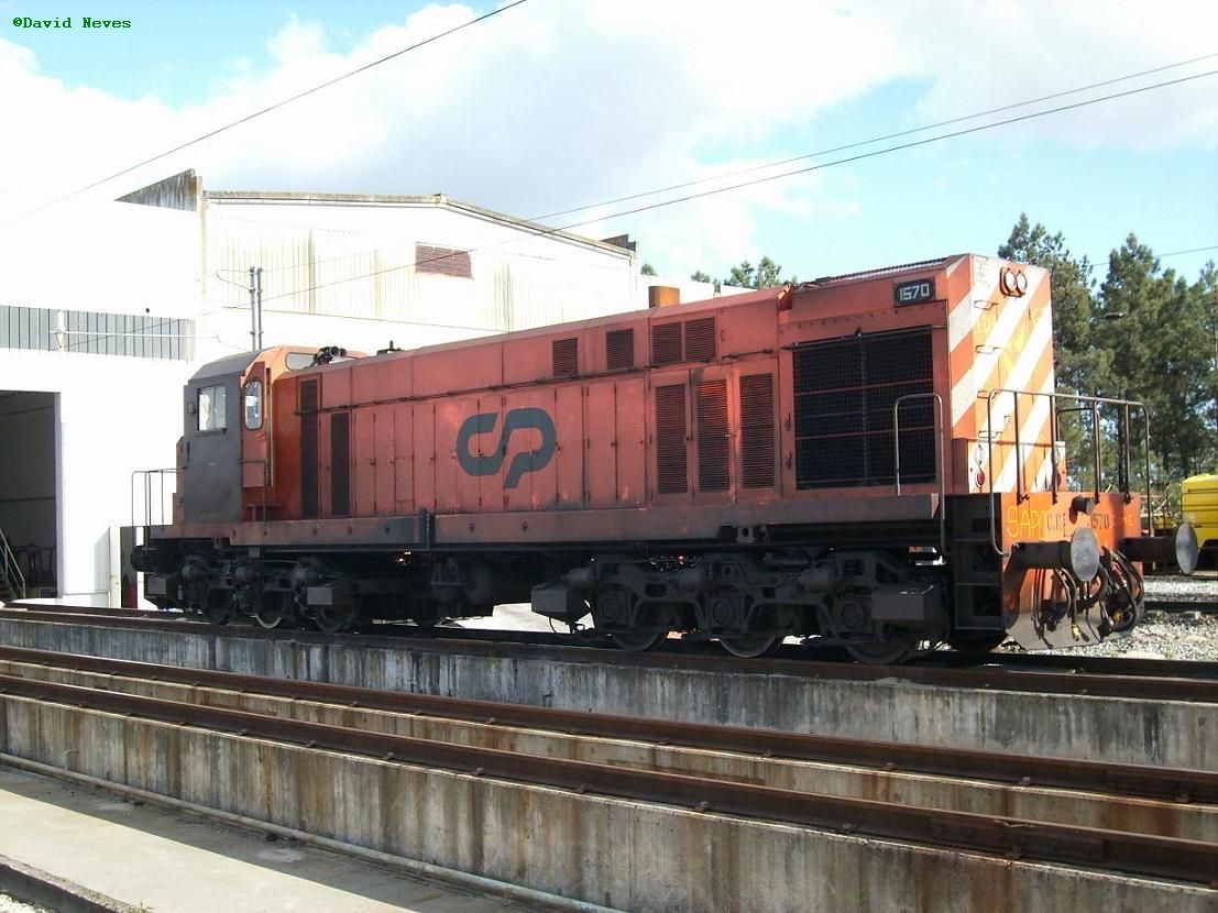 Estação do Poceirão. Locomotiva diesel-eléctrica CP 1570 estacionada perto do depósito.