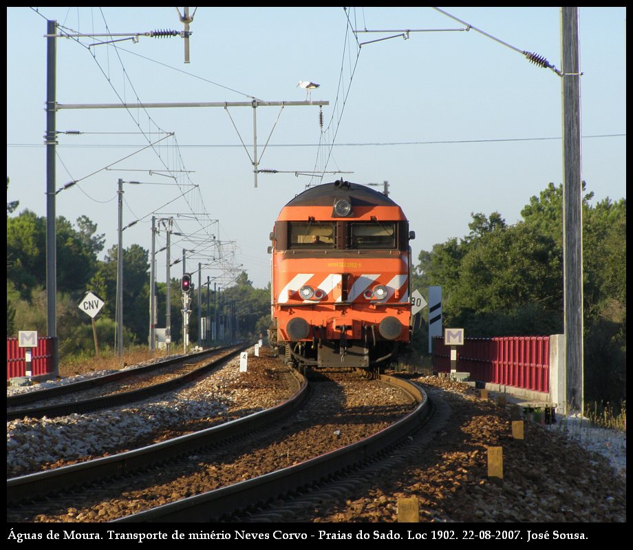 Locomotive 1902 at the Sines station (August 16, 1995)