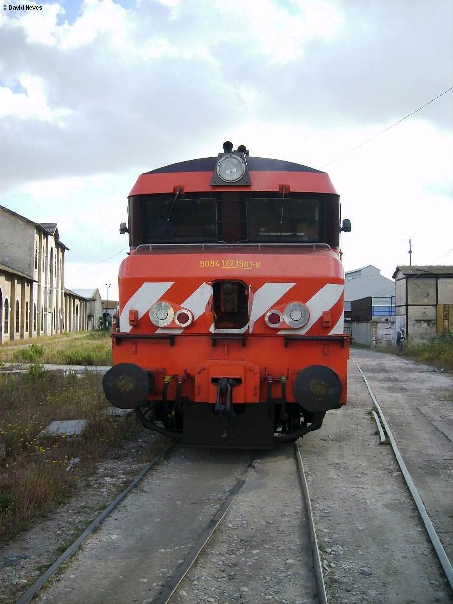 Barreiro railway station. CP 1901 diesel-electric locomotive pushing the whole convoy of locomotives towards the platform's area until it passes through the switches which give access to the maine line connecting this station with Pinhal Novo. Then she pulls the train, passing again through the switches and entering the maine line in order to proceed towards Poceirão (some kilometers after Pinhal Novo).