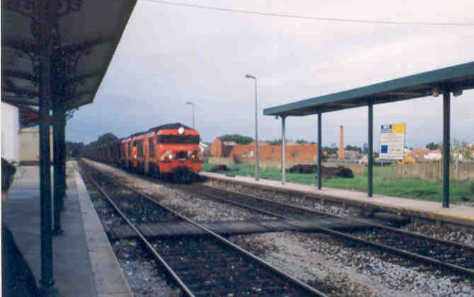 O carvoeiro chega a Grandola. 04-05-2002. Coal Train pulls into Grandola. ©Sérgio Miguel Parreira [smparreira@yahoo.com] |