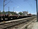 Partida de uma 1960 com um comboio de contentores para o ramal das celuloses