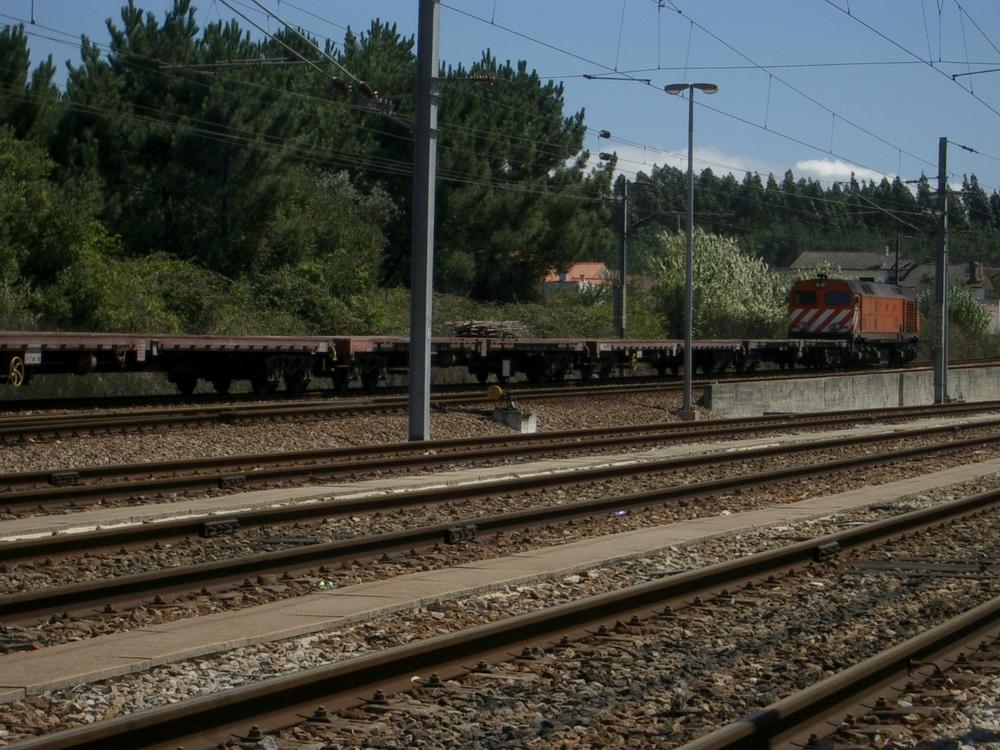 CP 1960 awaiting departure in Alfarelos direction with a container train