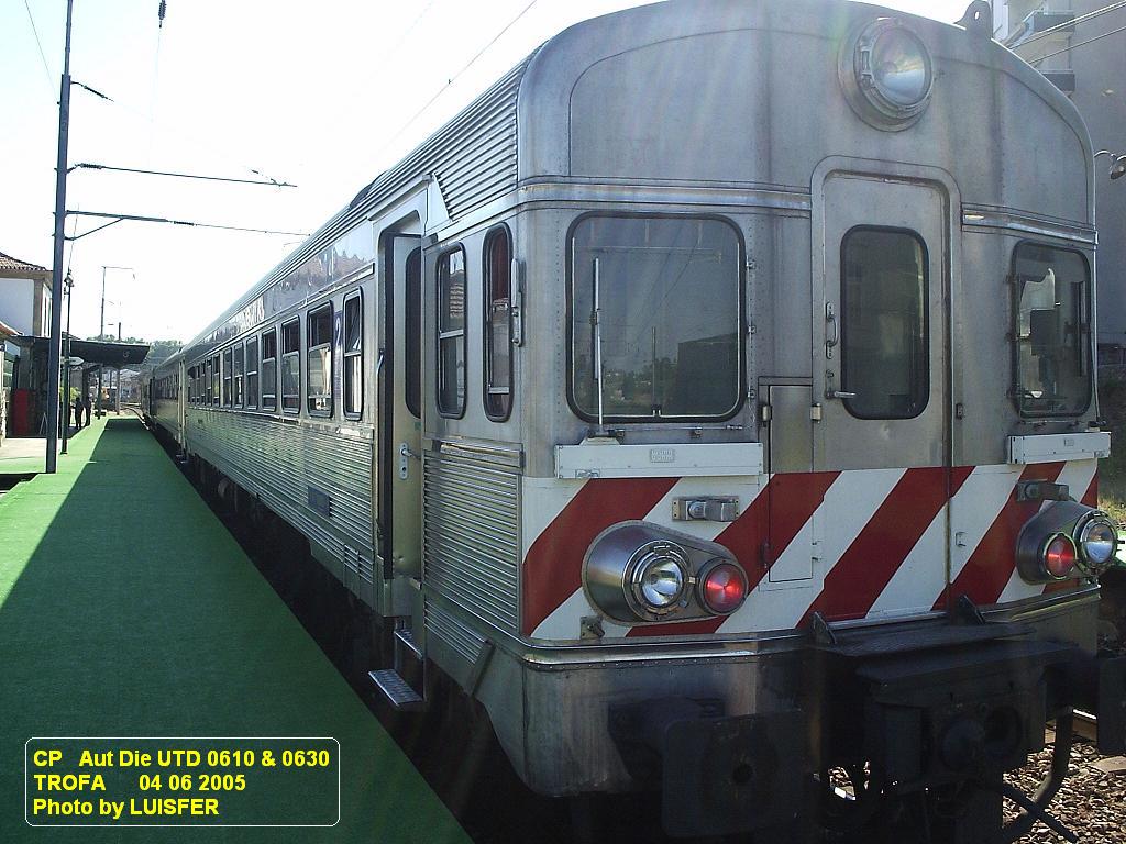| CP DMU UTD 0610 & 0630 in TROFA Station (04 06 2005) CP Aut Die UTD 0610 & 0630 na Estação da TROFA LUISFER - Estudos e Realizações Ferroviárias (http://luisfer.fotopic.net) (luisfer.fotopic@sapo.pt) |