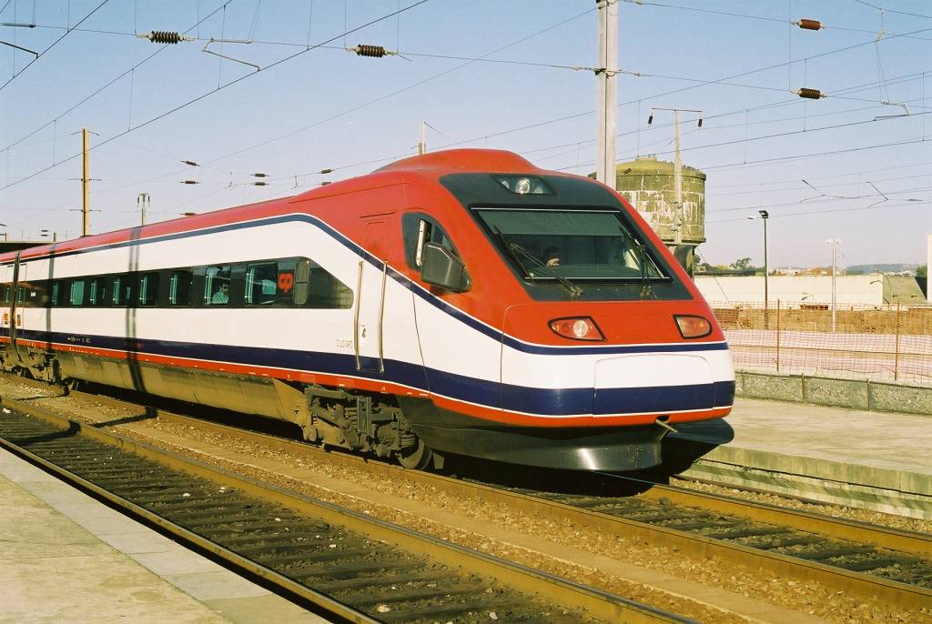 The intercity fast train used by CP on the Porto-Lisboa route. This is a active-tilting train ordered by Fiat Pendoluso consortium to Fiat Ferroviaria, AD Tranz and Sorefame. It derives from the ETR 460 of the FS but the design is signed by Giugiaro. Top speed is 220 km/h.