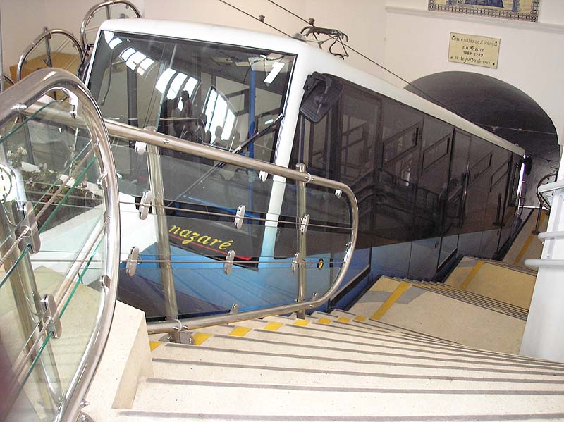Portugal "Elevator" (Funicular) of Nazaré. Car nr. 1 in the lower terminal. 22/04/2007.