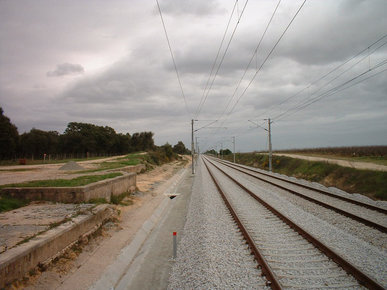 Linha do Alentejo renovada á entrada da estação do Pinhal Novo. Renewed Alentejo line in the entrance to Pinhal Novo Station. 27/02/2002 ©Sérgio Miguel Parreira |