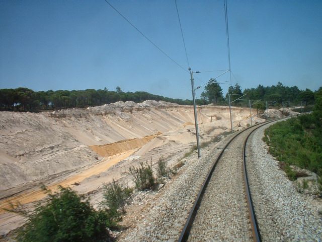 Vale de Guizo, aqui a linha fica á espera que removam a areia toda do monte. 04-05-2002.