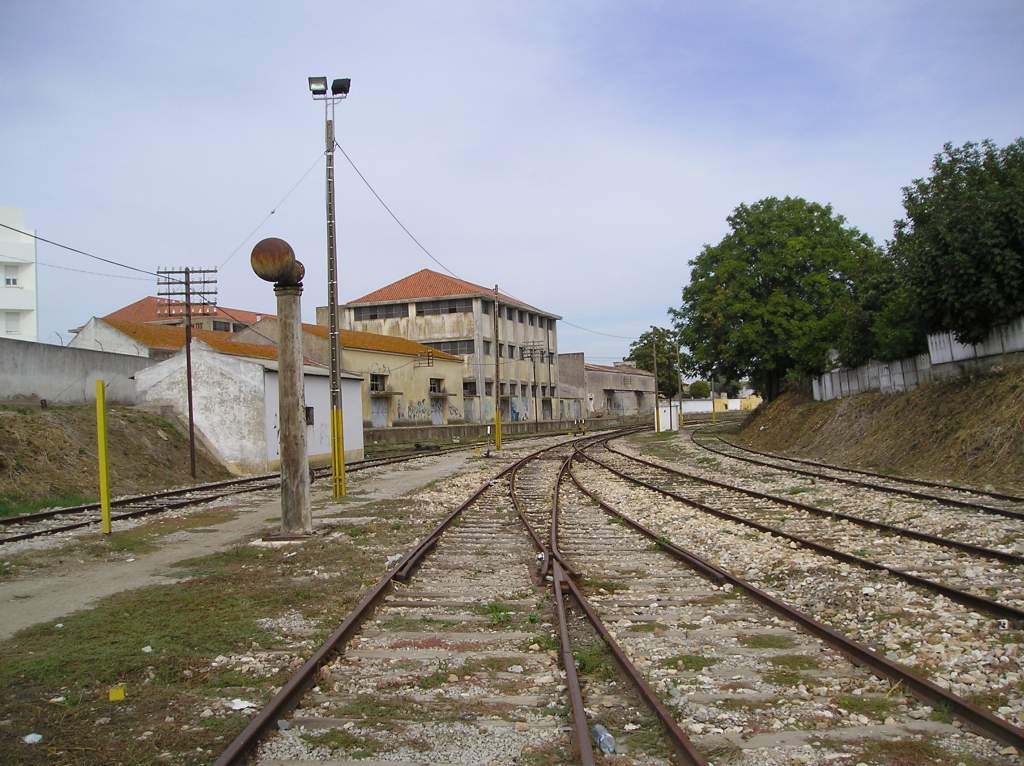 Estação de Évora. Linhas com destino a Estremoz (suspensa) e Reguengos (encerrada).