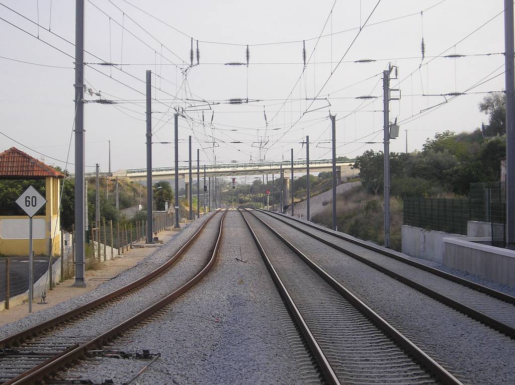 Estação de Lamarosa. Linha do Norte (linha central e da esquerda) e ramal de Tomar (linha da direita).