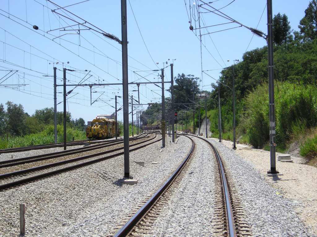 Estação de Setil, linha do Norte. Ao fundo o comboio com destino à central do Pêgo.