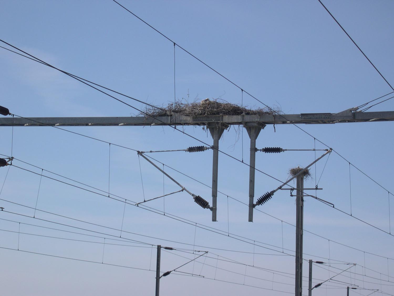 | Uma cegonha que gosta de ver passar comboios ! - Estação de Setil - 04 de Abril de 2004 A train spooter stork ! - Setil station - 04 April 2004 António Tavares (rail_2004@netcabo.pt) |