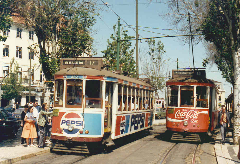 Tramway 324 on line 17 at Praça do Comercio on 30 may 1990