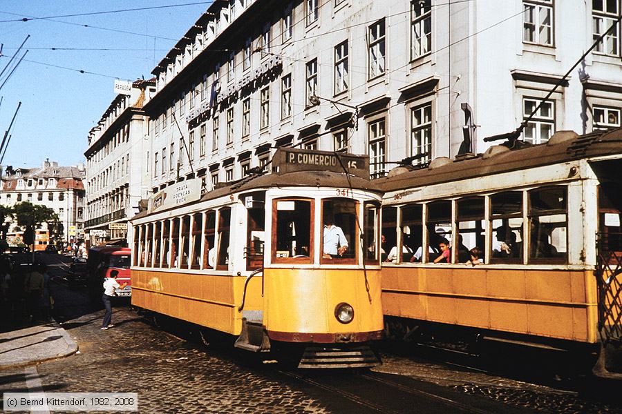 Lisboa - Tram - 341 Strassenbahn-Triebwagen 341 in Lissabon am 16. August 1982.