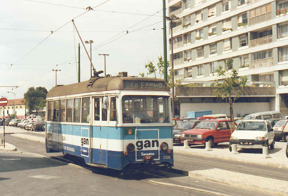Tramway 286 on line 24 at Rua das Armoreiras on 21 may 1990