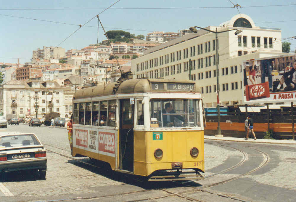 Tramway 317 on line 3 at Largo Martim Moniz on 28 may 1990