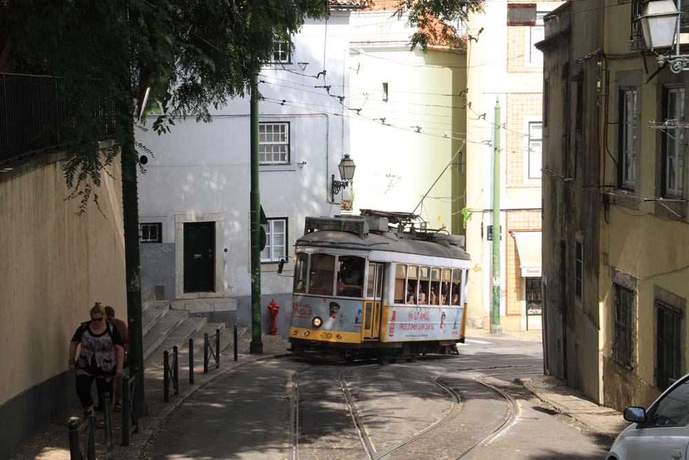 Lisbon, Tramcar 570 on line 28 in the Rua do Poco dos Negros. June 1997.