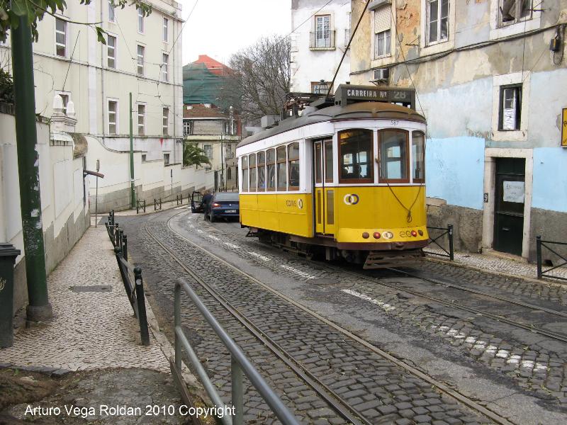 L-28 descendiendo por el Barrio de Alfama de Lisboa el 27-02-10.