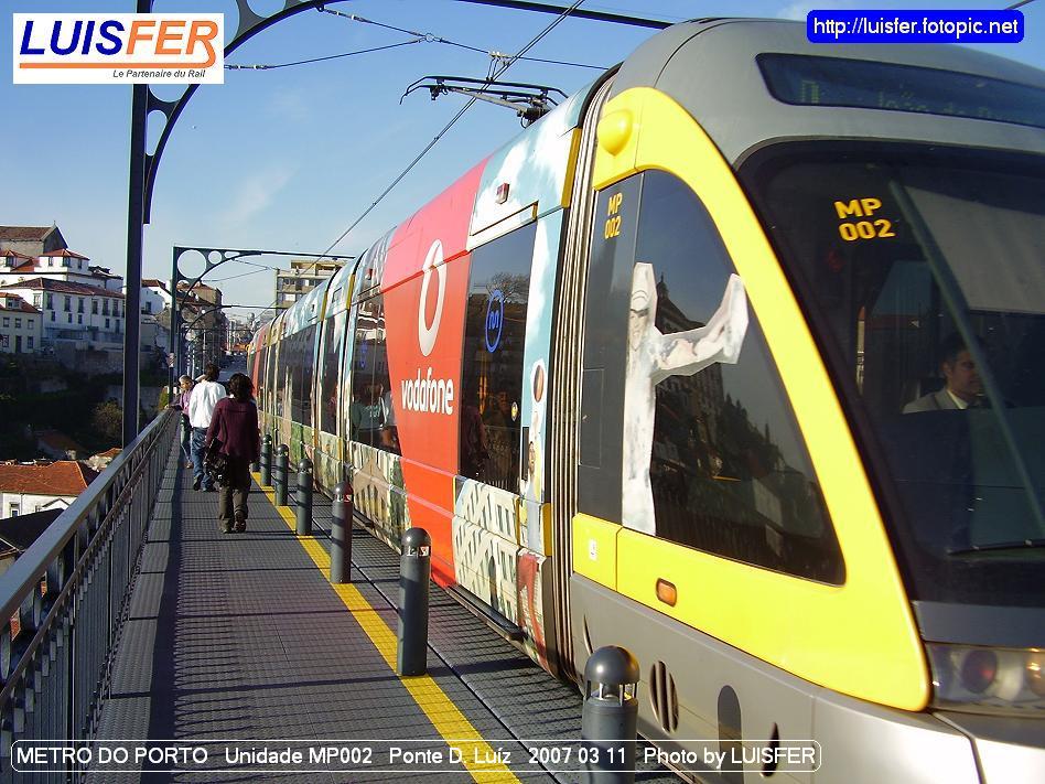 en METRO DO PORTO Electric Multiple Unit MP002 in Bridge D. Luíz / fr METRO DO PORTO Automotrice Eléctrique MP002 en la Pont de D. Luiz / ca METRO DO PORTO Unidad de Tren MP002 en la Puente de D. Luíz / de METRO DO PORTO Elektrische Triebwagen der MP002 auf der D. Luiz Viadukt / it METRO DO PORTO Elettromotrice MP002 nella Viadotto D. Luiz / pt METRO DO PORTO Automotora Eléctrica MP002 na Ponte de D. Luíz / 2007 03 11