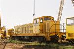 Estação do Barreiro. Locomotiva diesel-eléctrica Brissoneau do empreiteiro "Ferrovias" dentro do depósito.
