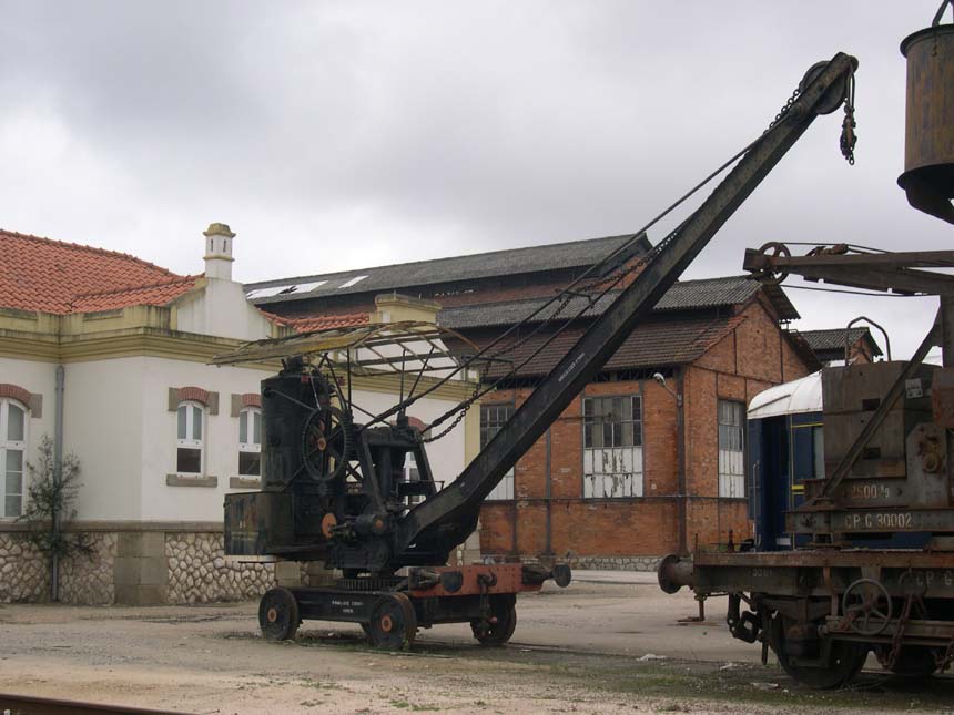 Museu Nacional Ferroviário: Antiga Grua Ferroviária a vapor, no Entroncamento. Fevereiro/2002