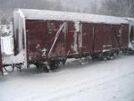 Romanian CFR Ggs freight cars waiting for departure at Volinja Station.
