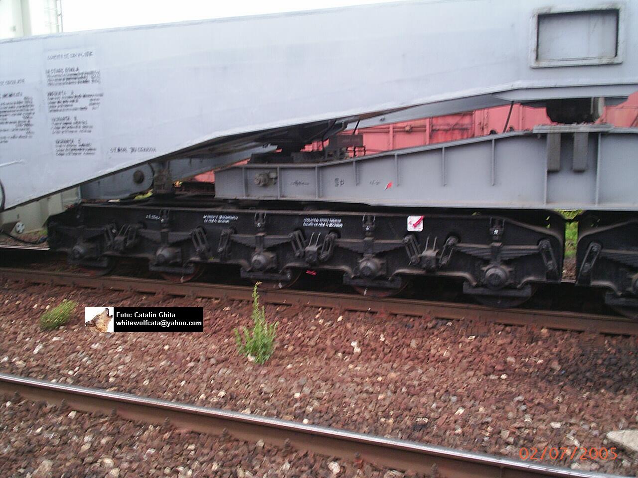 Boghiu cu 5 osii al unui vagon tip Uaal, de transporturi speciale. Vagonul avea 4 astfel de boghiuri!!!
