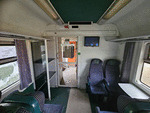 An interior in second class passenger car "Bmee" of CFR (Caile Ferate Romane / Romanian Railways) at Bucuresti Nord in composition of IR 1558 from Buzau.