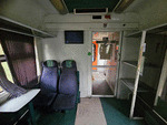 An interior in second class passenger car "Bpee" of CFR (Caile Ferate Romane / Romanian Railways) in Bucuresti Nord in composition of IR 1681 to Constanta.