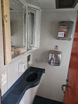 An toilet in a passenger car of type "B11" of CFR (Caile Ferate Romane / Romanian Railways) in composition of International train with number 461 from Bucuresti Nord to Varna.