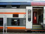 A second class double deck passenger car "Bmee" of CFR (Caile Ferate Romane / Romanian Railways) at railway station Bucuresti Nord with IR 1552 from Ploiesti Sud.