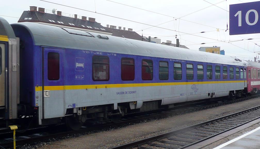 CFR 61 53 71-70 004-3 WLABmee sleeping car, Dacia fast train, Wien Westbahnhof.