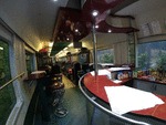 An interior in a second class passenger car with bar of (Caile Ferate Romane / Romanian Railways) in composition of fast train with number IC 538 from Brasov to Constanta.