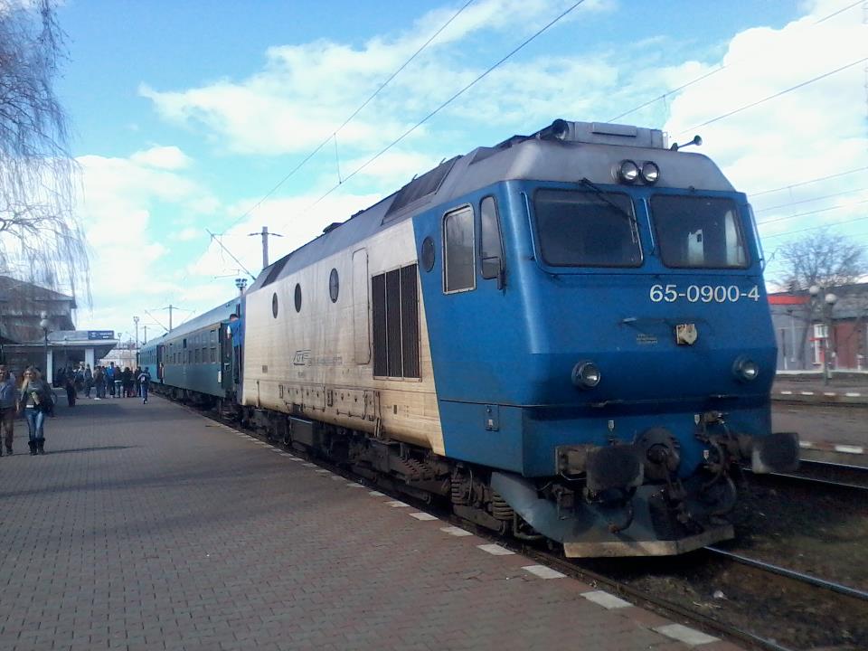 Locomotive 65-0900-4 currently allocated to Iasi depot seen at Pascani in February 2013 working the Regio service from Pascani to Bacau.