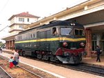 Class 71 diesel locomotives where designed in 1976, for pulling heawy passenger and freight trains. Because they had a high fuel and oil consumption and they where intended for long journeys, they where little used. Today they are out of service. 71-0001-9 is a 4000 hp diesel locomotive. The 16 cylinders engine was built in Romania, under ALCO license. The locomtive has an electric transmision and can reach a top speed of 140 km/h. Photo and scan by: Andrei Berinde (fbvro@xnet.ro) |