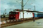 CFR class 41 electric locomotive (41-054-1) in Bucuresti Nord station ready for departure to Timisoara (A1621). Note the darker shade of red paint and the larger surface covered by it. Date: June 14th, 2004.