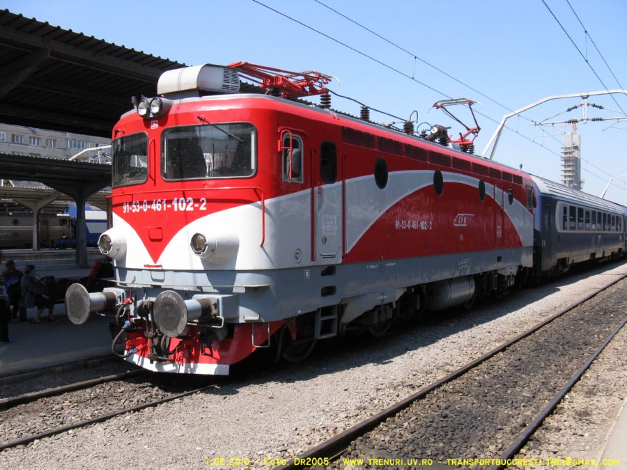 S.N.T.F.C. ,, C.F.R. Calatori" S.A. 461 102-2 (Home depot: Suceava Nord) Train: IC 552 (Suceava - Bucuresti Nord) More pictures (over 50) with class 46 locomotives. Photo by Dr2005 - transportbucuresti.trei(a)gmail.com, www.trenuri.uv.ro. |