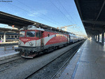 An elektric locomotive with number 91 53 0 477 054-7 of CFR (Caile Ferate Romane / Romanian Railways) on railway station Bucuresti with night fast train from Vatra Dornei.A video movie about entering the train in railway station Bucuresti Nord , you can see on this adress: