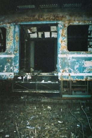 CFR EMU series 55 (or what remained of it) being scrapped Bucharest Triaj (shunting station). This is how the interior looks now. Photo taken shortly after enterimng the unit through the old doors.