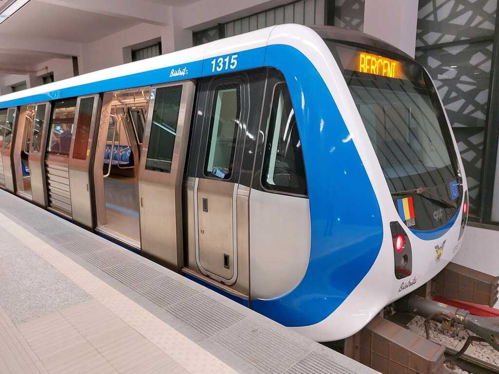 Bucharest CAF metro getting ready to leave the brand new Tudor Arghezi station for Berceni on the M2 line.