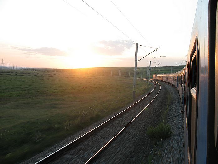 Tren accelerat Iasi-Timisoara somewhere between Iasi and Pascani shortly before sunset. 19.08.2006 Martin P.