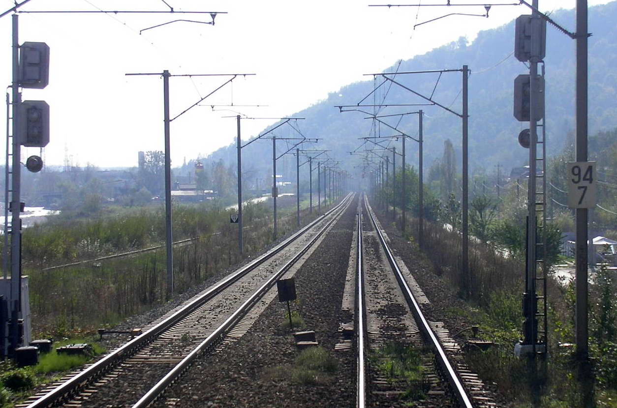CFR hi-speed track on the Campina-Buchartes route seen from a train at different speeds between 110 and 140 Km/h.