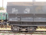 A freight cars of Romanian private operator GFR (Grup Feroviar Roman) standing on railway station Senovo in composition of freight train.