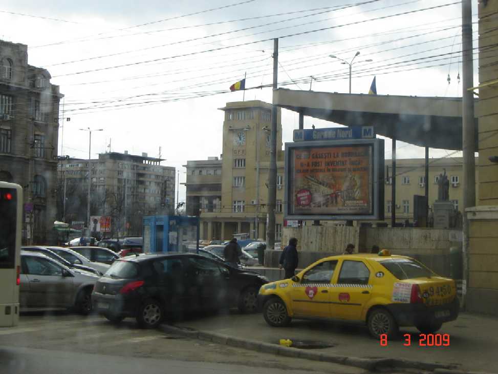 Bucuresti / Bucharest Gara de Nord This is the front side of the Gara de Nord (North Station) of Bucharest, Romania. Just before the taxi stand is the M1 / M3 entrance to the metro. The M4 entry is about a block away. Taken 15 February 2006 by Josh Hanz (mailto:josh_hanz@hotmail.com) |