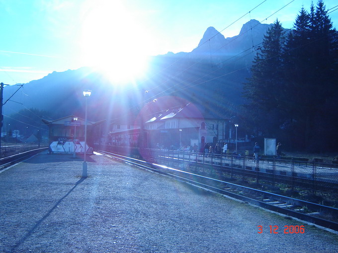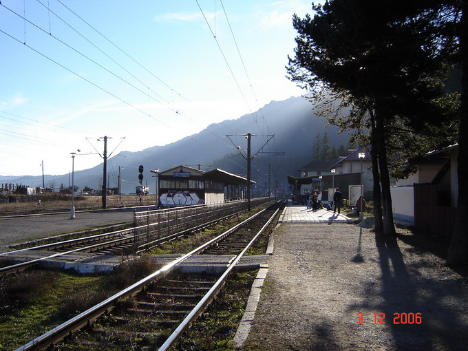 Busteni rail station, on Prahova Valley. You can see Bucegi mountains.