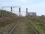 Exit signal in Lehliu station, showing green (proceed with maximum speed allowed for that sector). Date: 28.10.2006